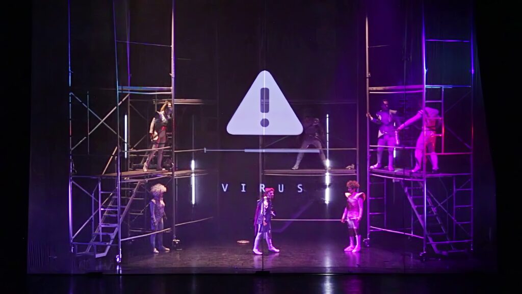 Allí realizamos los visuales de la escenografía, logrando un efecto interactivo entre los actores y las proyecciones. Además, realizamos asesoría en gamificación en la escritura del libreto.